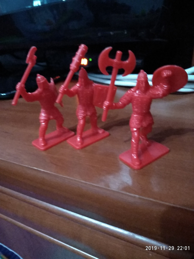 Очень хорошие фигурки. Пластик качественный. Сыночки играют с удовольствием. Из всей серии, так же рекомендую Рыцари-3 золотые и солдатики Эскадрон зеленые.