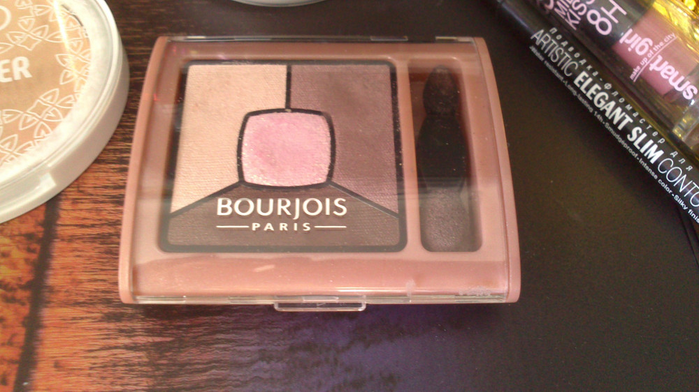 Мои тени в оттенке 02. Футляр так себе, но сами тени - ! - мягкие, с очень хорошей пигментацией. Беру в руки палетку от Bourjois, и отражение в зеркале нравится все больше и больше: глаза красивы и свежи.