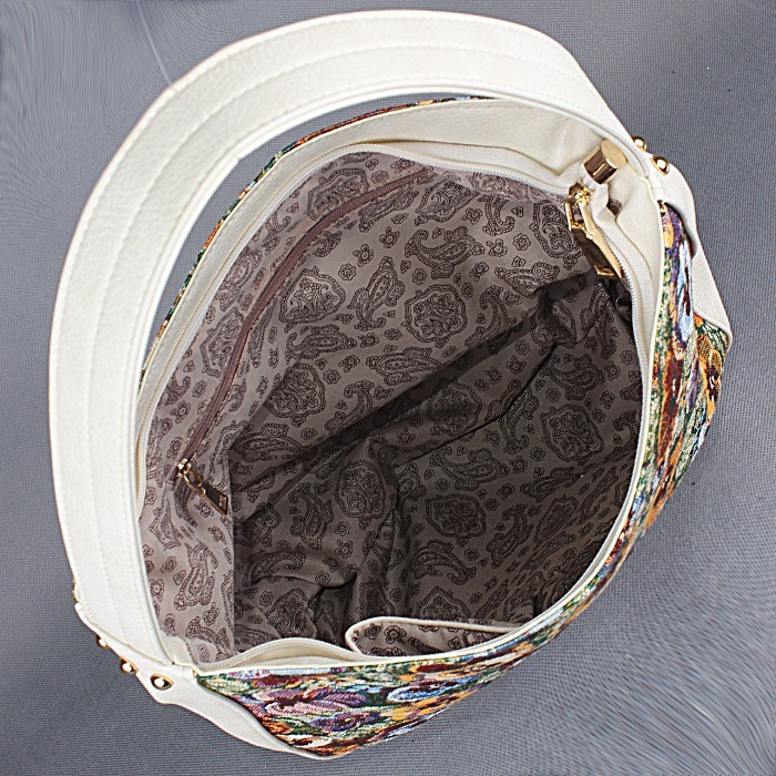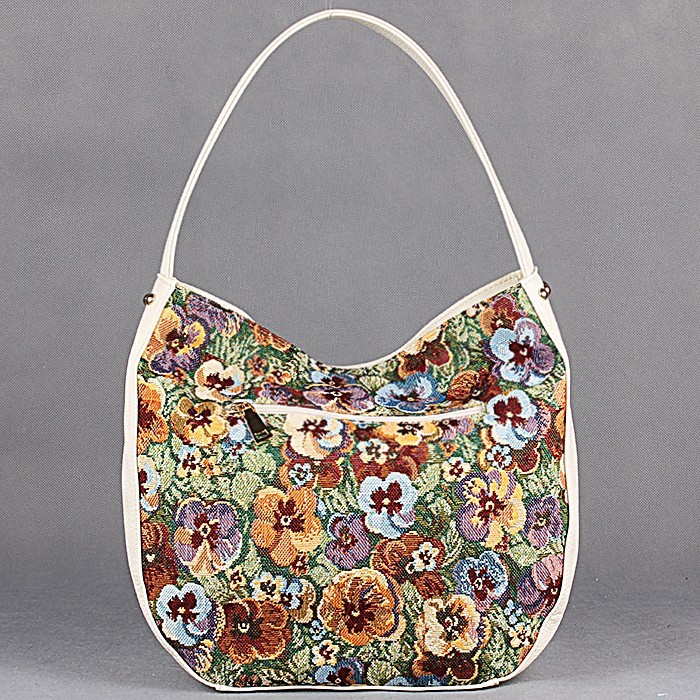 Сумка пришла быстро. Простовата (на фото интереснее). Гобелен с одной стороны (там где замок, гобелена нет). Сумка среднего размера. Ну, для разнообразия, на лето пойдет.