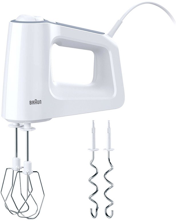 Прибор оснащен парой венчиков, имеющих особую форму, благодаря которой смеси получаются нежными и воздушными. С его помощью можно приготовить майонез, крем для торта, соус, взбить яичные белки в пышную пену, сделать жидкое тесто на блины. Также в комплекте предусмотрены два длинных спиральных крюка для теста. Теперь вы сможете намного быстрее замешивать тесто для разнообразной выпечки, пасты, а также смешивать мясной фарш. Оно всегда будет иметь идеальную консистенцию.