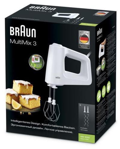 В данный момент этот товар отсутствует в продаже. Возможно, у нас найдется аналогичный или похожий товар здесь. Серия: MultiMix Миксер Braun HM 3000 White – компактный и удобный прибор, который поможет вам быстро и эффективно справиться с любыми кухонными задачами по взбиванию и смешиванию. Если вы часто готовите разнообразные пироги, торты, десерты, вам точно не обойтись без этого маленького помощника. Благодаря технологии SmartMix вам будет очень комфортно с ним работать: мотор прибора располагается непосредственно над креплением насадок, поэтому основной вес миксера переносится вперед и вам не так тяжело держать его в руке во время работы.