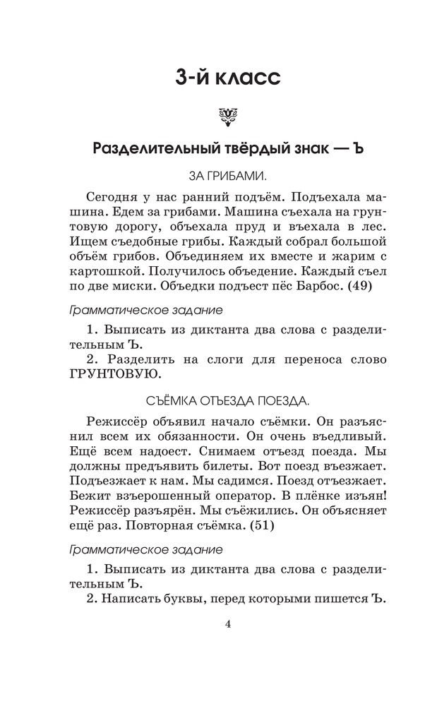 Приобрела книгу для занятий с ребенком дома. Стандартный сборник диктантов по всем темам 3-4 класса с дополнительными заданиями. Для третьего класса диктанты представлены 75-80 слов, более сложные , чем в аналогичной книге диктанты 3-4 класс.