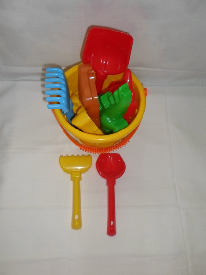 Набор был, в качестве подарка, к выбранному заказу в день защиты детей. Красивые инструменты, яркие (нам пришла салатовая лопатка и красные грабли), пластик без запаха. На прочность еще не проверили)))