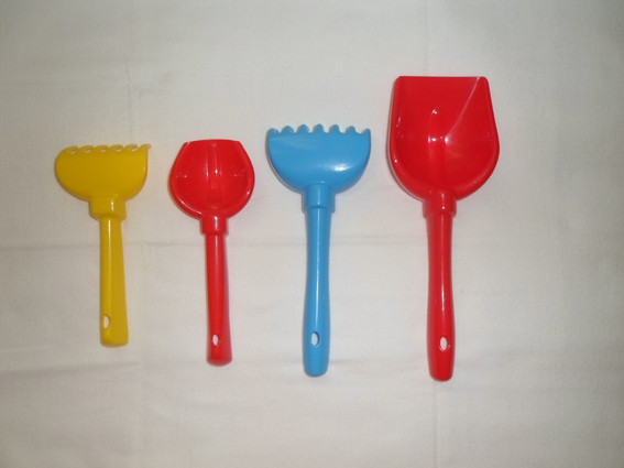 Отличный набор для самых маленьких любителей поиграть в песке. Крохотный совочек и грабельки яркие, гладкие, без запаха, острых краёв и зазубрин. На фото видно насколько они малы, но нам такие и были нужны. Спасибо Flip.