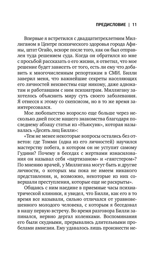 Таинственная история Билли МиллиганаВ данный момент этот товар отсутствует в продаже. Возможно, у нас найдется аналогичный или похожий товар здесь. Серия: #правильные_книги Литература давно пыталась понять разум человека. Но как понять того, в ком уживаются 24 личности? И как разобраться, кто главный в этом множестве сознаний? Только мастер психологической прозы способен распутать такой лабиринт сознания, из которого даже хозяин — преступник Билли Миллиган — не может выбраться. |