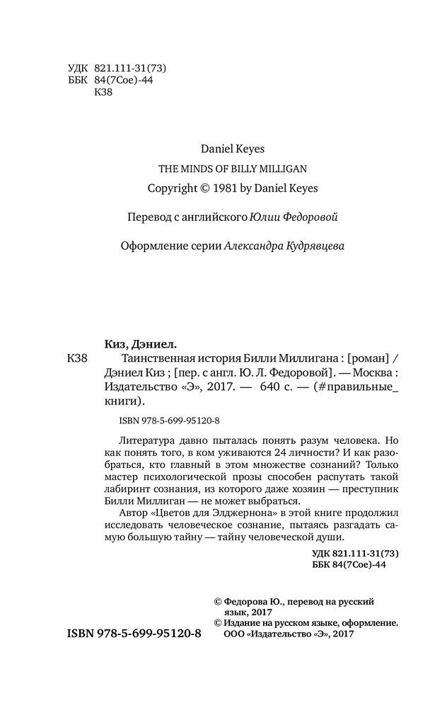 Почитала "Таинственная история Билли Моллигана" Дэниал Киз, очень понравилась, теперь хочу продолжение почитать "Война Миллигана"