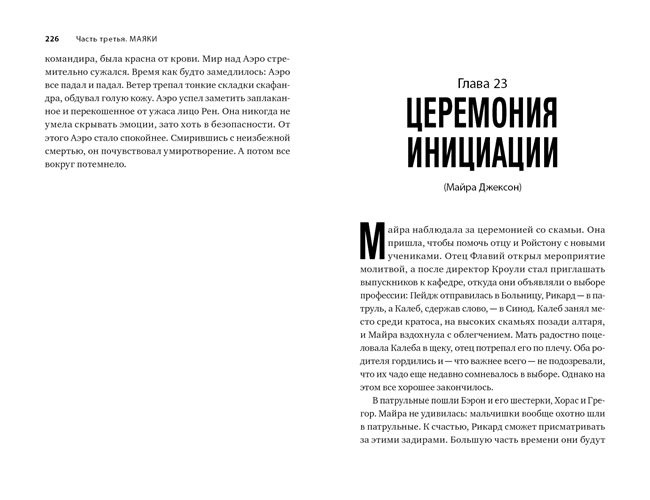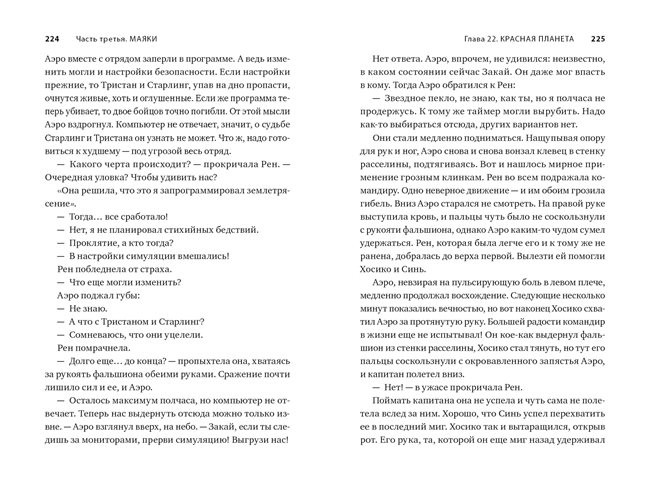 Доставка и качество книги устраивают. Книга для подростков, для 14-16 леток, герои слишком продвинутые. По сюжету после апокалипсиса миновало 1000 лет и часть людей выжила. Конкретно описывается жизнь живущих на дне океана и витающих в космосе. Ковчеги их функционируют за счёт машины анимус, которая сама отвечает за оснащение кислородом и водой (ну это о тех что живут под водой, а вот про тех что в космосе почему то ничего не сказано). В общем даже при том что это фантастика, мысли о том как этот долбанный анимус проработал 1000 лет, откуда они брали свой бесконечный панк, чем они элементарно подтирали задницу целых тысячу лет не давали мне покоя и из-за этого я нервничала до тех пор пока не дочитала эту книгу. То же самое и о людях, что живут в космосе, там вообще ни слова о невесомости! Так о чем же говорить дальше? Так они ещё умудряются там жить, как в военном лагере. Более того люди и под водой, и в космосе ограничены в пространстве, в движениях, в питании, в кислороде. Я так предполагаю, что они вероятнее всего должны были подвергнуться мутации и вообще организмы их должны быть слабыми, вялыми. Автор не попытался потрудиться над этим, видимо счел, что деткам не стоит заморачиваться на таких моментах. Любовные отношения описаны, как то странно, между главными героями происходит, какое то не понятное слияние которое длится всю ночь и от которого они получают удовольствие (зачем наводить подростков на такие фантазии). В общем, книгой разочарована и абсолютно не рекомендую!