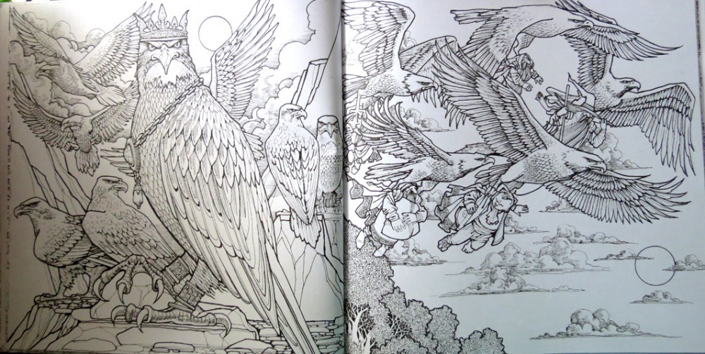 Шикарная книга! Очень красивые иллюстрации, мелкие детали. Бумага средней плотности, раскраска прошита и на склейке.
