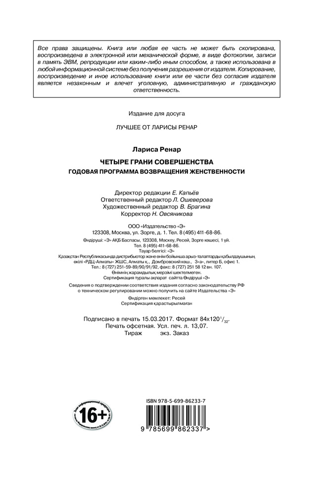 Серия: Лучшее от Ларисы Ренар Энергетика, психология и стратегия отношений в бестселлере Ларисы Ренар — проверенное временем и многочисленными переизданиями пособие к законам мужского и женского для миллионов читателей. Учебник тактики состояний, поведения и образов истинной женщины, знающей, чего она хочет и как этого достичь. |