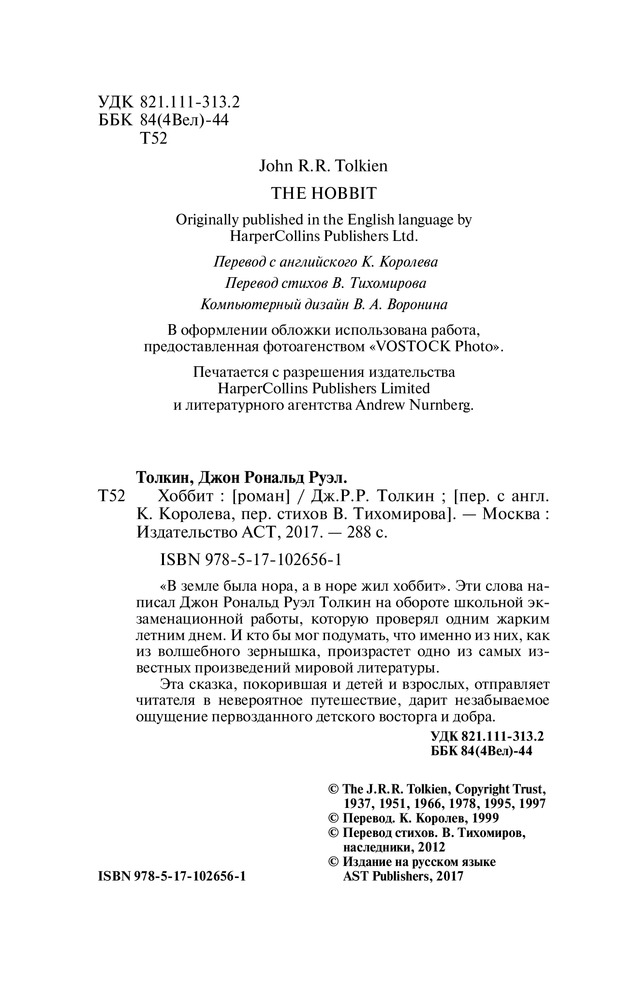 В данный момент этот товар отсутствует в продаже. Возможно, у нас найдется аналогичный или похожий товар здесь. «В земле была нора, а в норе жил Хоббит». Эти слова написал Джон Рональд Руэл Толкин на обороте школьной экзаменационной работы, которую проверял одним жарким летним днем. И кто бы мог подумать, что именно из них, как из волшебного зернышка, произрастет одно из самых известных произведений мировой литературы.