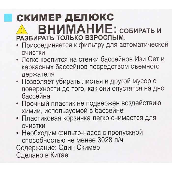Скимер для бассейнов — спаситель от ручного труда. Это — небольшое устройство для первичной очистки воды в бассейне. Выглядит скимер, как стакан с сеточкой. Мусор засасывается внутрь и не выплывает обратно на поверхность. Остаётся только периодически вытряхивать его из сеточки. Выбрать его просто, ведь он без проблем подойдёт как для надувных бассейнов, так и для каркасных, благодаря своим креплениям. Кроме того, его можно подключить к насосу и быстро очистить воду, тем самым увеличить срок жизни фильтрам.