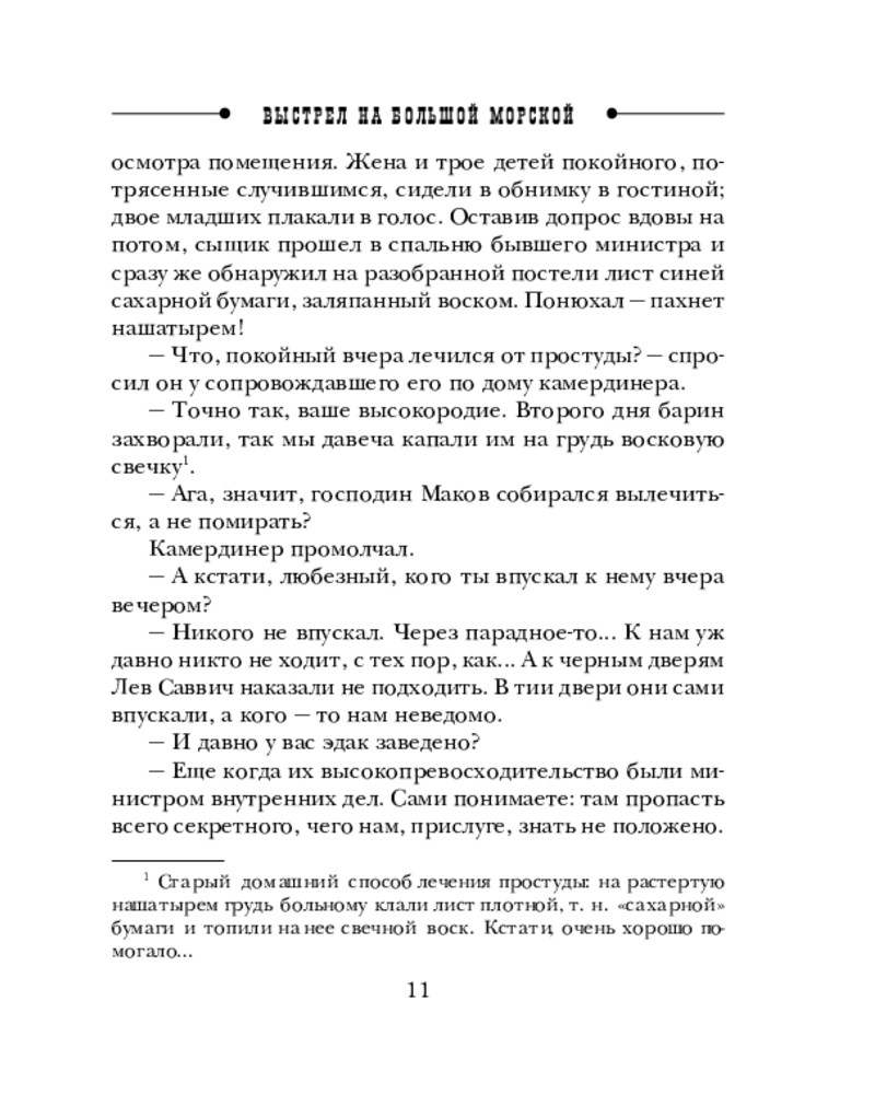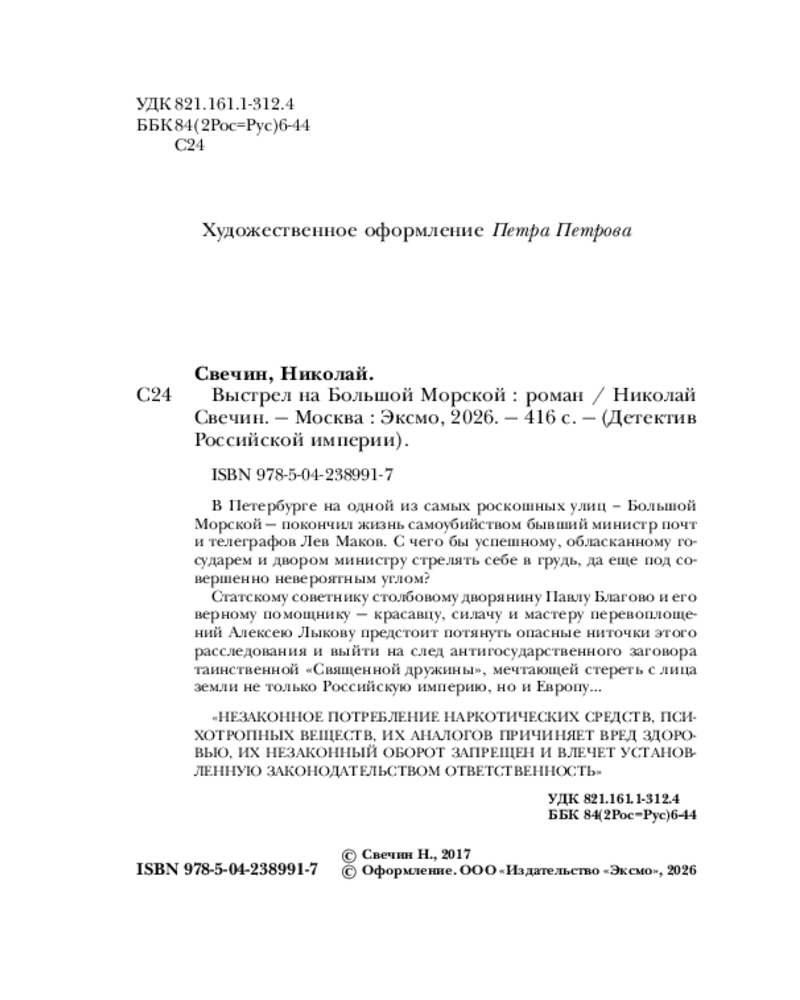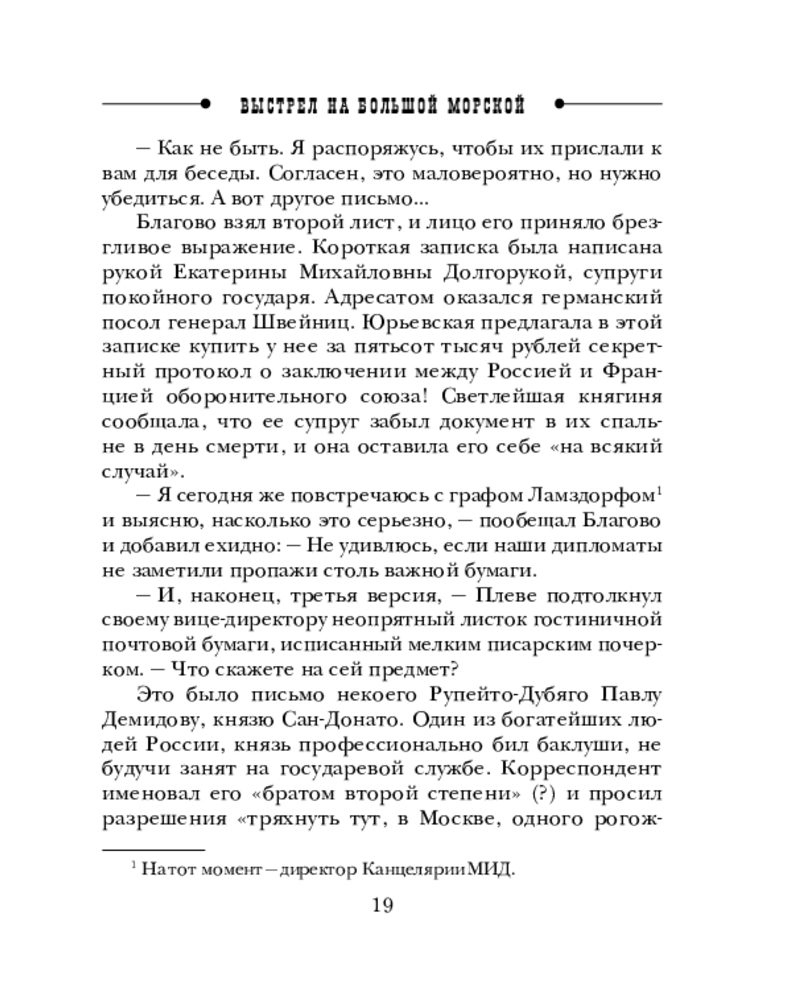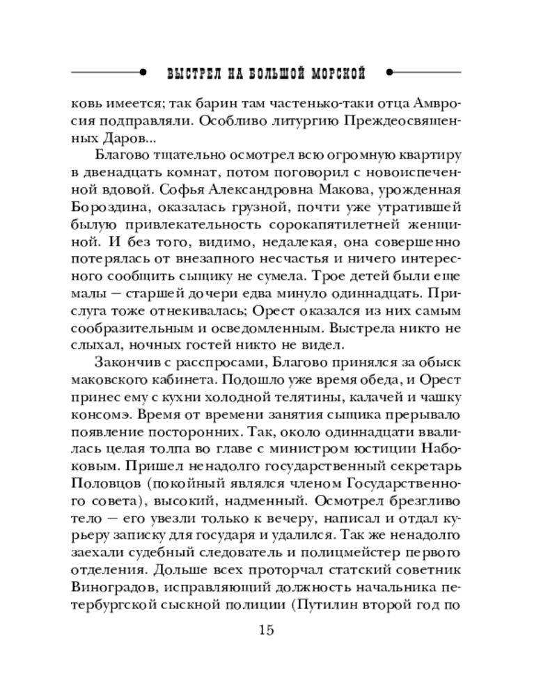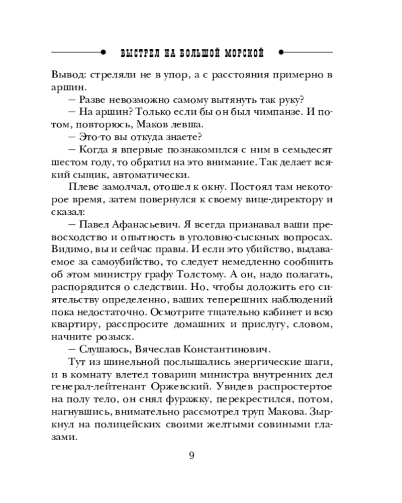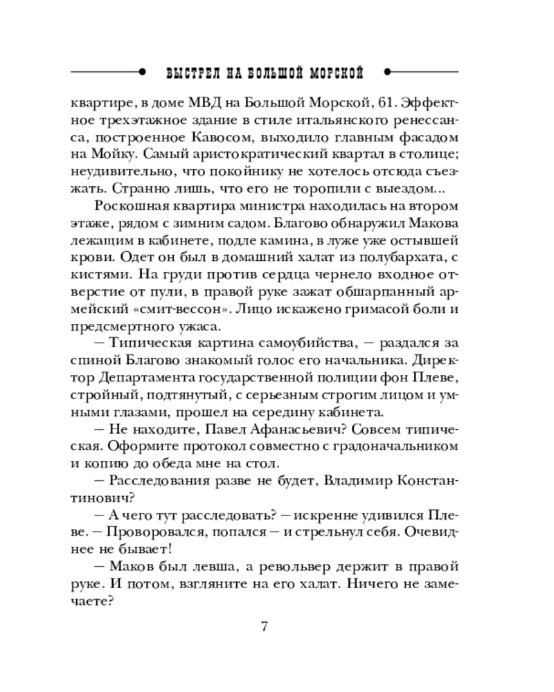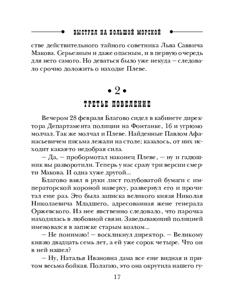 💳 Оплатить за товар можно при получении 🇰🇿 Есть бесплатная доставка по Казахстану от 1 дня 🎁 Копите бонусы с каждой покупки Серия: Детектив Российской империи (обложка) В Петербурге на одной из самых роскошных улиц — Большой Морской — покончил жизнь самоубийством бывший министр почт и телеграфов Лев Маков. С чего бы успешному, обласканному государем и двором министру стрелять себе в грудь, да еще под совершенно невероятным углом? |