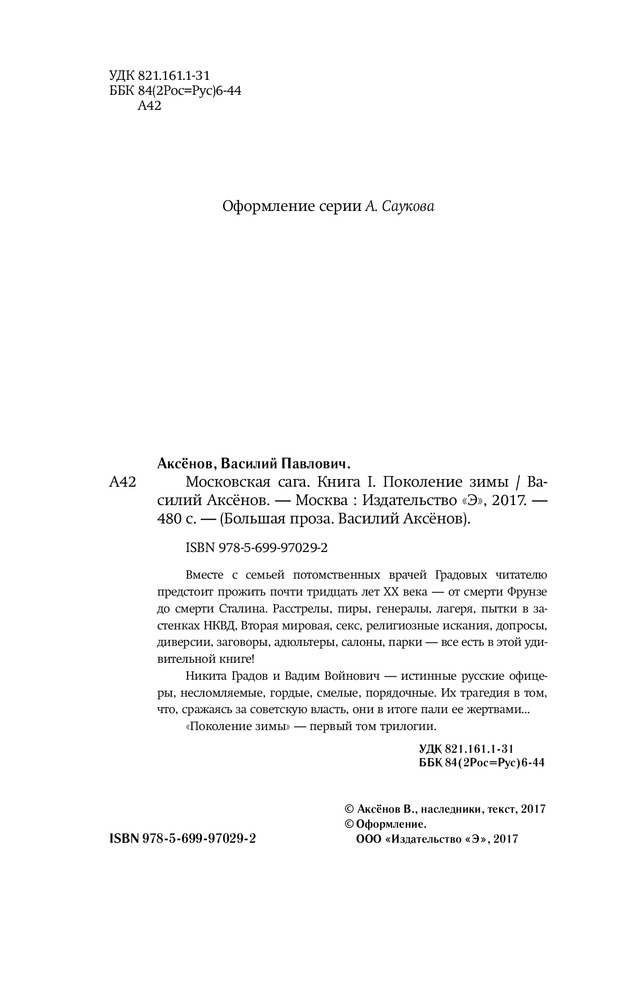 Прекрасное издание. Ну а фамилия автора Василий Аксенов говорит сама за себя. Тридцать лет от смерти Фрунзе до смерти Сталина в истории семьи. Давно искала эту книгу. Спасибо, flip.kz!