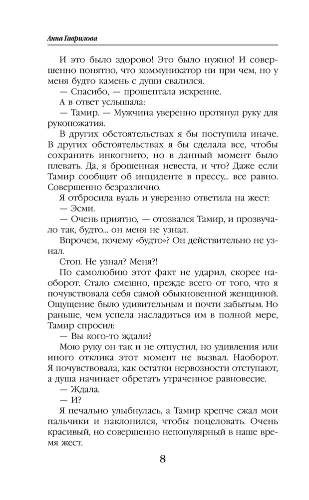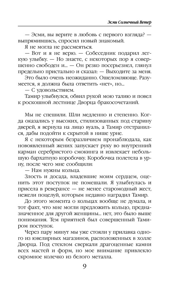 Но эти двое случайно встретились возле Дворца бракосочетаний, а потом вдруг прозвучало: "Эсми, выходите за меня..."В тот момент о последствиях никто не думал, зато оба считали развод неприемлемым. А раз так, придется найти точки соприкосновения, преодолеть препятствия и разобраться с прошлым. И кто знает, может, эта авантюра перерастет в нечто большее? В настоящую любовь?