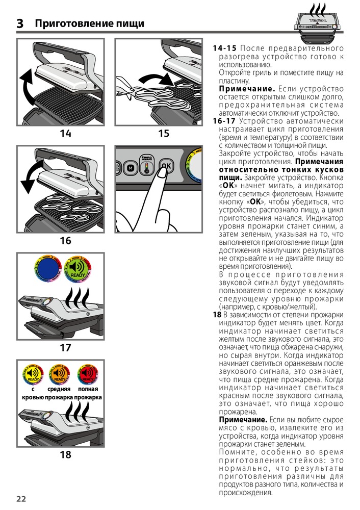 Гриль Tefal GC722D34 – умное устройство, способное самостоятельно определить степень прожарки мяса. На нём можно готовить мясо, рыбу, овощи, сосиски, сэндвичи и бургеры – девять автоматических программ для разных блюд помогут быстро и вкусно накормить целую компанию. |