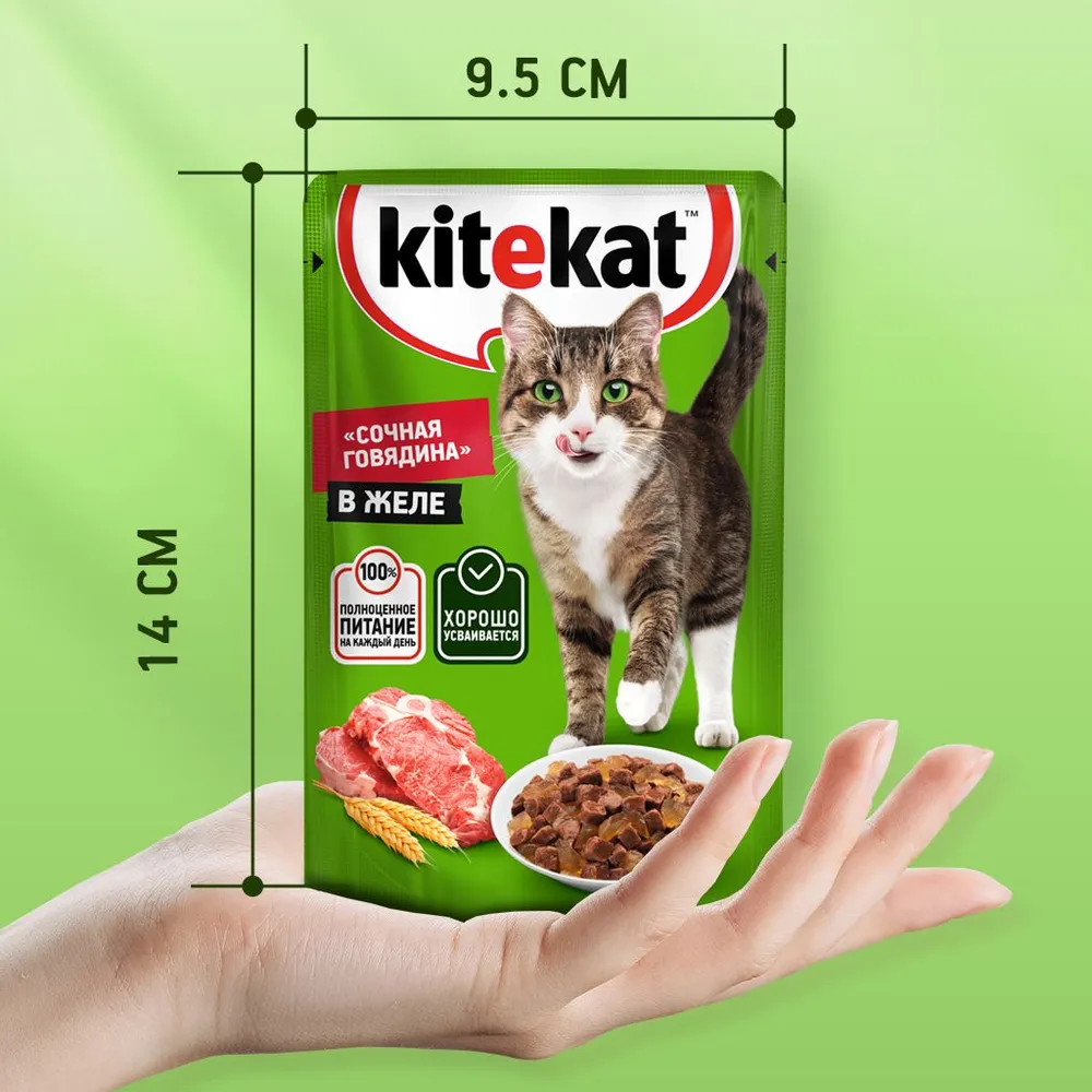Kitekat Корм для взрослых кошек «Сочная говядина в желе»