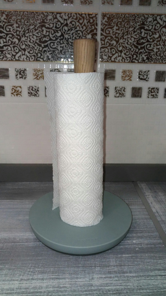 Держатель отличный, удобный, устойчивый, качественный. Подходит для больших рулонов полотенец. За счёт резинового кольца на дне держателя при отрывании полотенца по столу не скользит. Смотрится респектабельно. Нам нравится вся серия Leo. Покупкой довольны. Спасибо Flip.