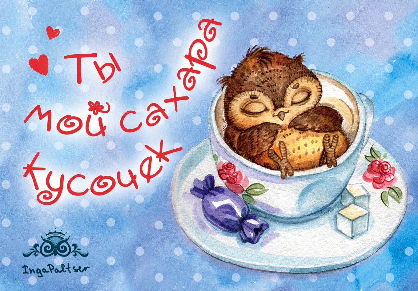 | Магнитная открытка. Совы. Ты мой сахара кусочек!