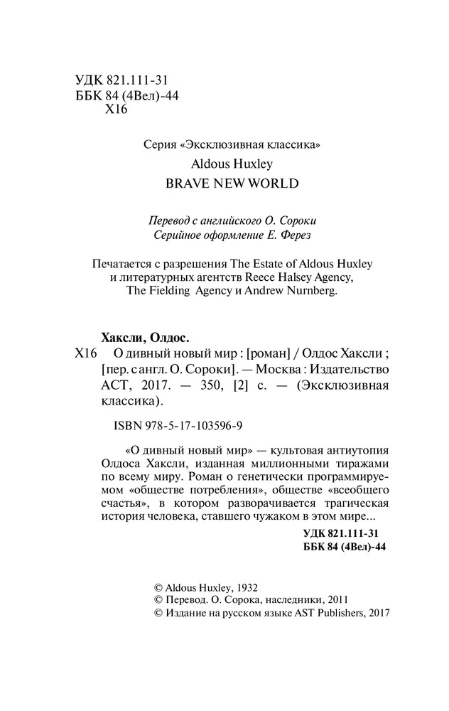 О дивный новый мирВ данный момент этот товар отсутствует в продаже. Возможно, у нас найдется аналогичный или похожий товар здесь. Серия: Эксклюзивная классика (Лучшее) «О дивный новый мир» — изысканная и остроумная антиутопия о генетически программируемом «обществе потребления», в котором разворачивается трагическая история Дикаря — «Гамлета» этого мира. |