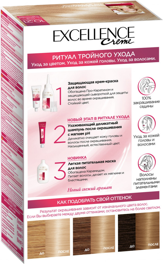 L'Oreal Paris Крем-краска для волос cтойкая «Excellence», оттенок 10.21 Светло-светло русый перламутровый осветляющий