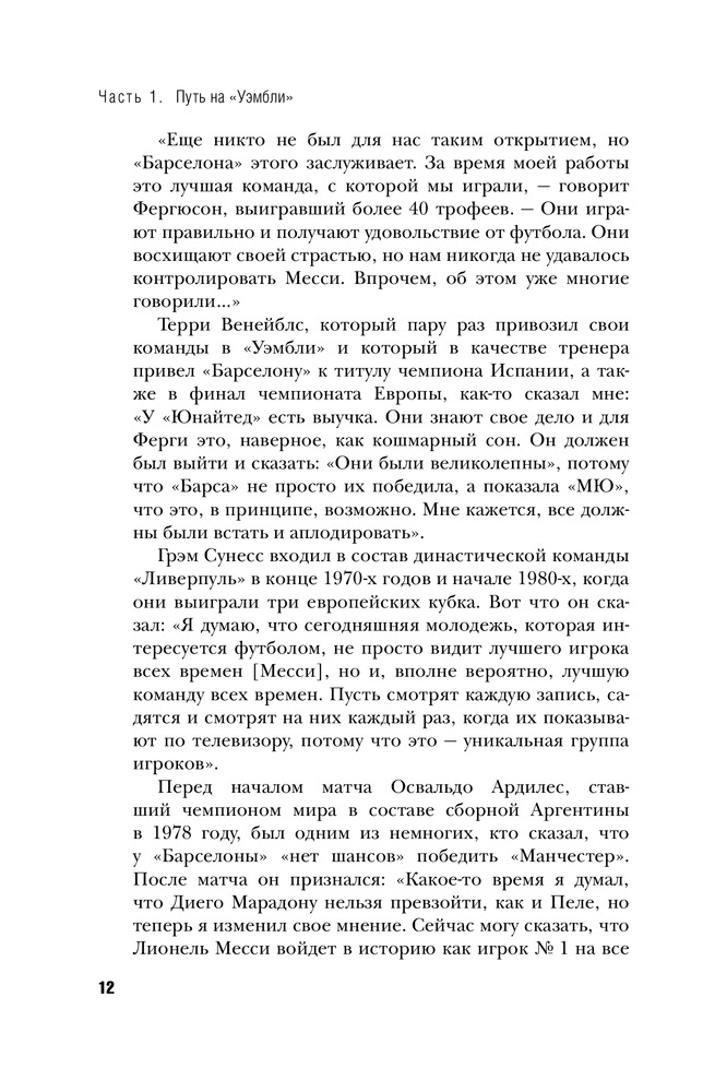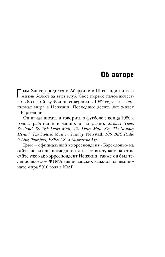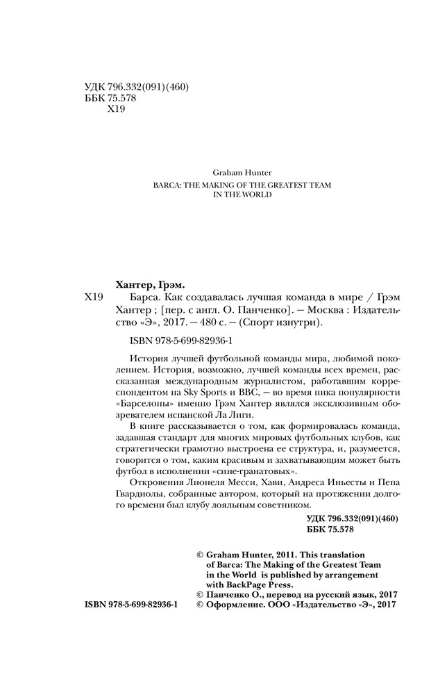 Барса. Как создавалась лучшая команда в миреВ данный момент этот товар отсутствует в продаже. Возможно, у нас найдется аналогичный или похожий товар здесь. Серия: Спорт изнутри История лучшей футбольной команды мира, любимой поколением. История, возможно, лучшей команды всех времен, рассказанная международным журналистом, работавшим корреспондентом на Sky Sports и BBC, — во время пика популярности «Барселоны» именно Грэм Хантер являлся эксклюзивным обозревателем испанской Ла Лиги.   |