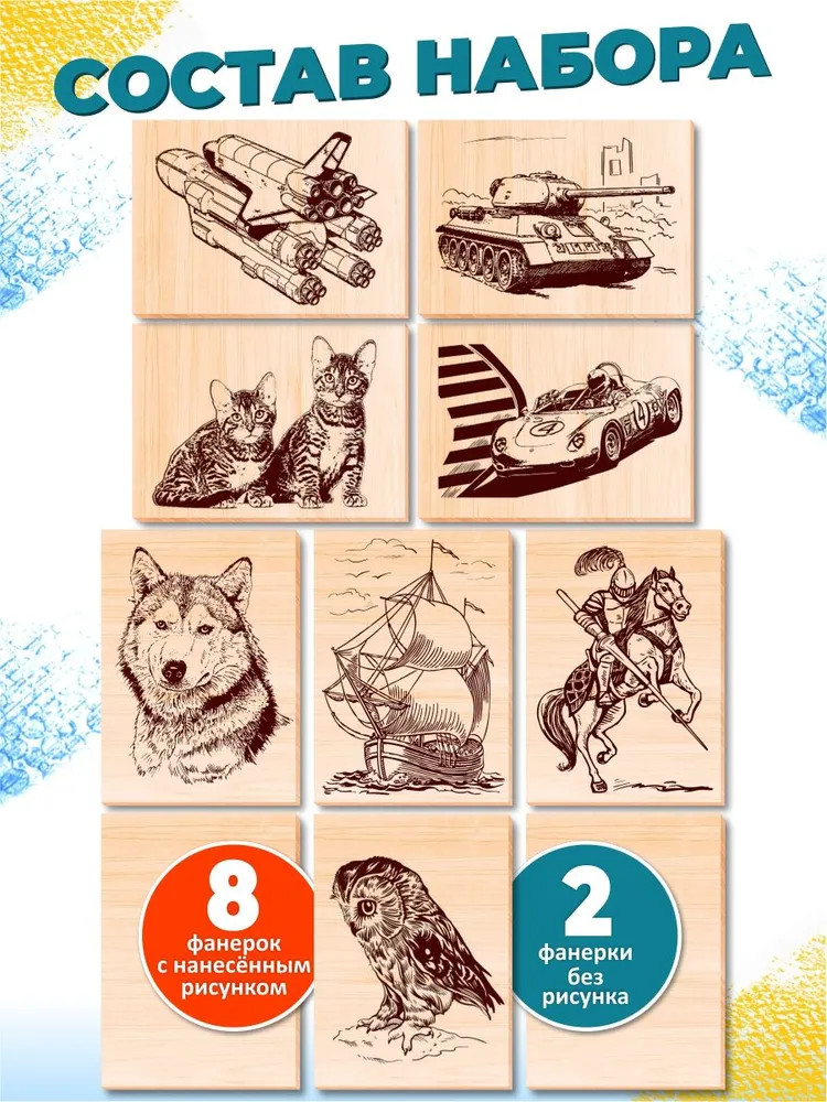 Брали для поделок в школу, сыну понравились, выжигает целый день.