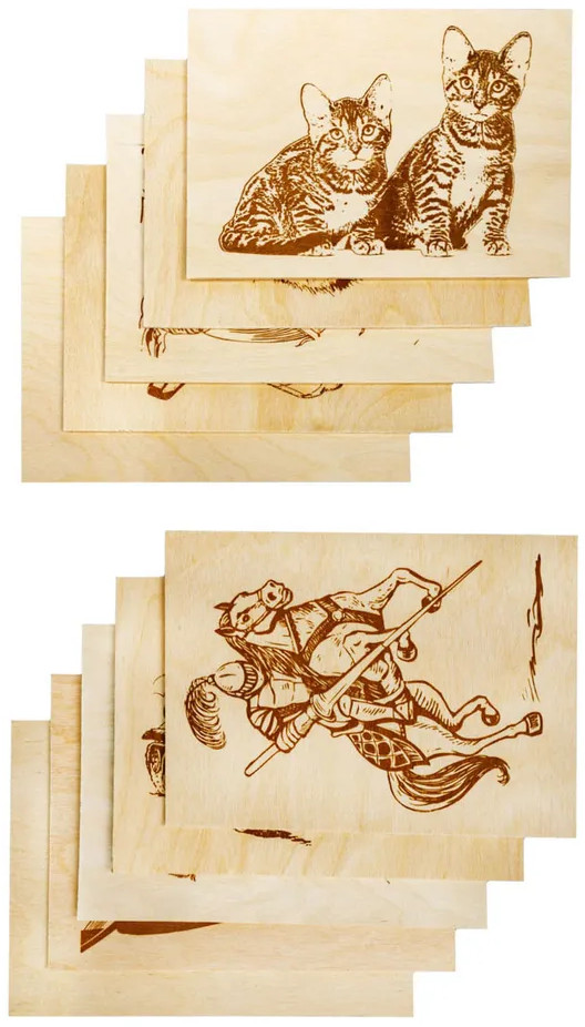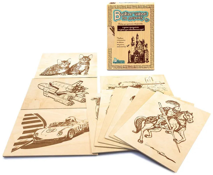 Классные фанерки! Толщина где-то 4 мм. Можно в дальнейшем и на второй стороне выжигать. Чуть посложнее, чем набор "Умелец"! Одного набора надолго хватит. И цена супер для них! Спасибо, Flip!