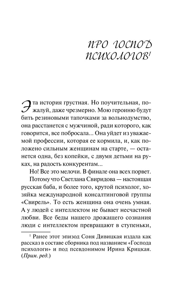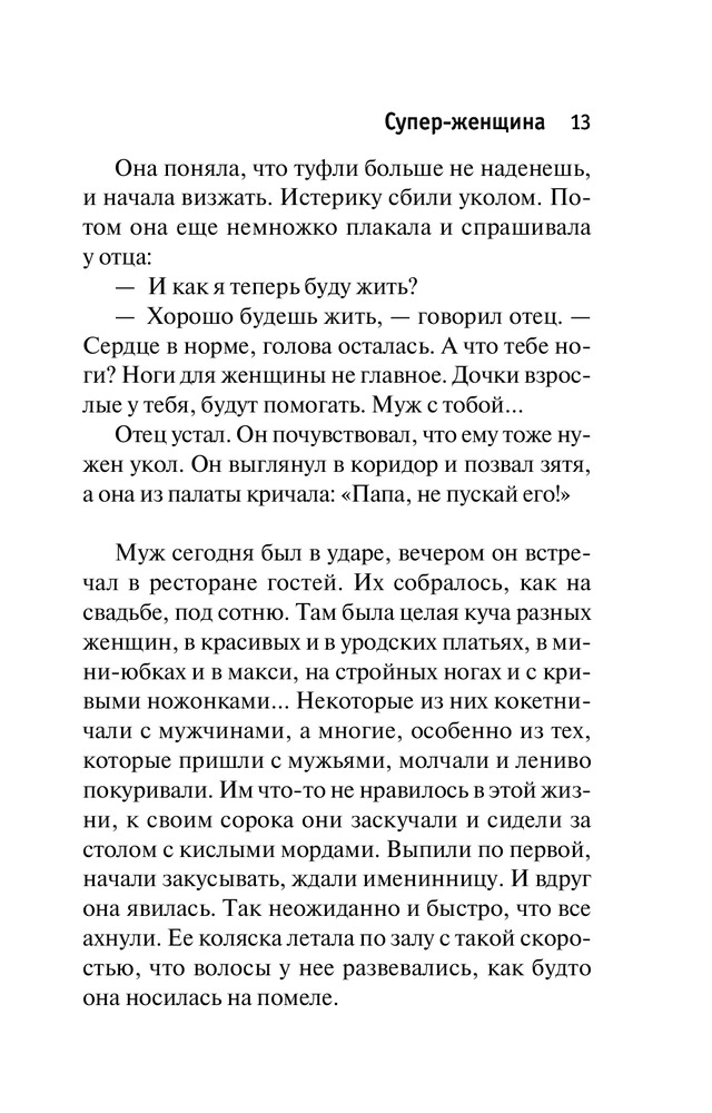 Поэтому не надо ругать нашу женскую литературочку. Мы платим — мы и заказываем музыку. Мы чаще мужчин покупаем книжки — и потому на каждой странице имеем право увидеть себя, себя, себя. Сильных, выносливых, позитивных.