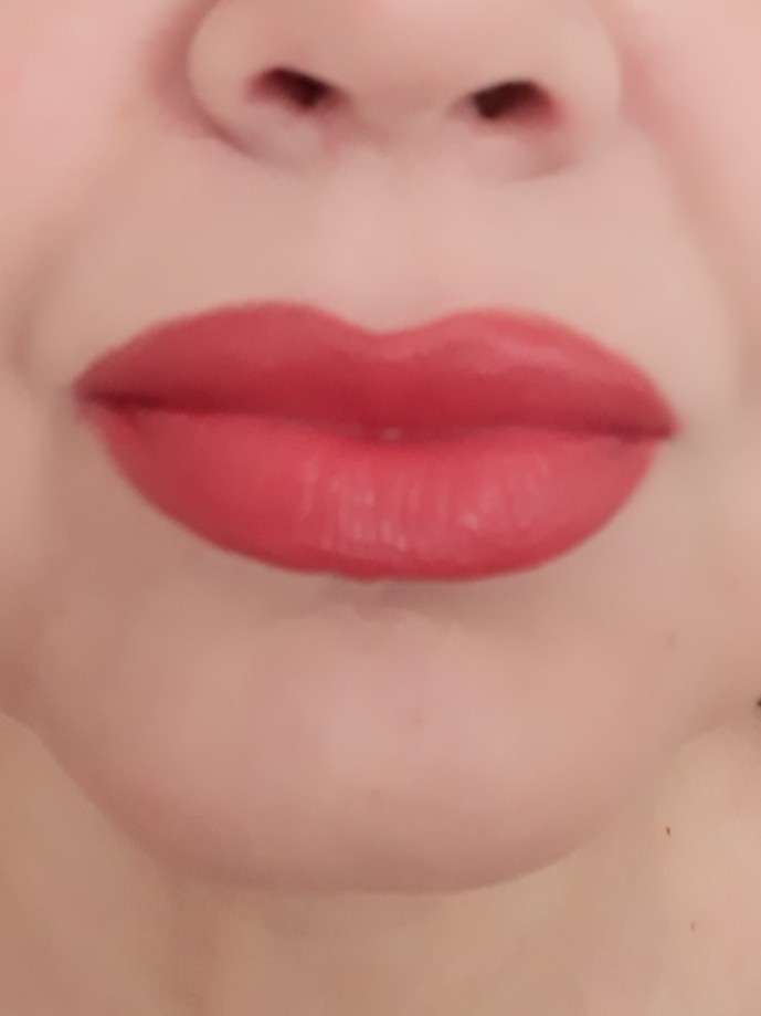 Все ждала-ждала, когда кто-нибудь напишет отзыв, не выдержала и купила попробовать. Плюсы: цвет, бесподобный красный цвет, который пойдет абсолютно всем, с любым цветотипом, любой формой губ, абсолютно универсальный оттенок красного. Нанесение и консистенция очень удобные, финиш не совсем матовый, слегка сатиновый, но не блестящий и не глянцевый, непонятно почему производитель назвал его блеском, пигмента хватит на целую помаду, покрытие хорошее, равномерное и плотное, не размазывается, несмотря на свою яркость, держится часа 2-3, если не кушать, не курить и не целоваться, очень хорошо реагируют мужчины на такой оттенок губ, прямо аж "стойку" охотничью, но тут есть и минус - целоваться,курить и кушать с ним я на губах я бы не рекомендовала, после еды и перекура сама выглядишь, как мультяшный вампирёныш, а после поцелуя оба, и сама, и партнер, поэтому перед едой и поцелуями лучше его незаметно убрать. Контур делала карандашом этой же марки, оттенок 14 хорошо совпадают, тон в тон. И да, убирается с лица легко, несмотря на яркий цвет, никаких супер-средств, как для удаления стойкой матовой помады не надо, можно просто ватной палочкой, без ничего на ней.