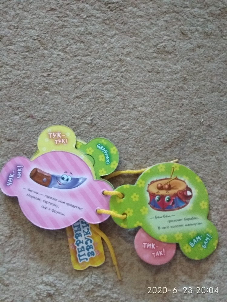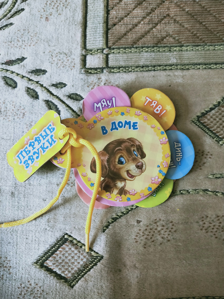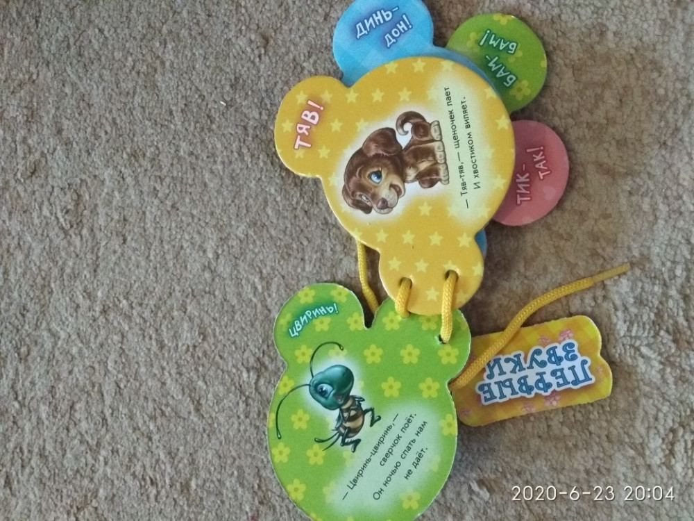 Замечательная серия книжек. Маленькие, красочные. Для каждого предмета и существа привязка звука (котёнок мяу, кораблик ту-ту) и к каждому небольшой стишок. На фото-превью книжка изображена скреплённой шнурком, в оригинале книжный переплёт.