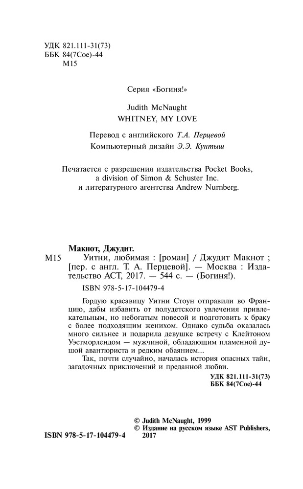 Джудит Макнот (Judith McNaught) автор более четырнадцати книг, написанных в жанре "romance" - любовный, дамский роман - очень популярном во всем мире.