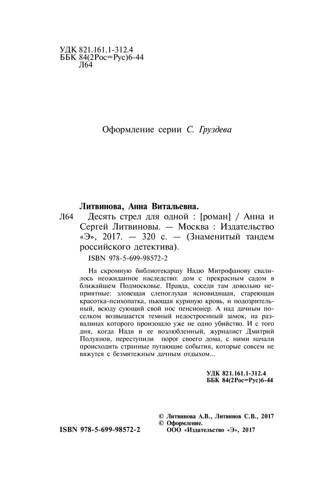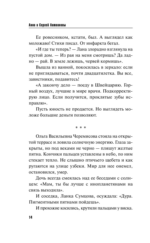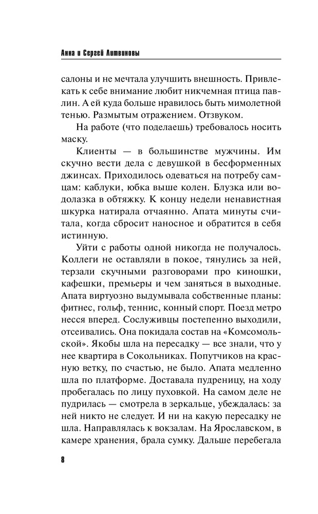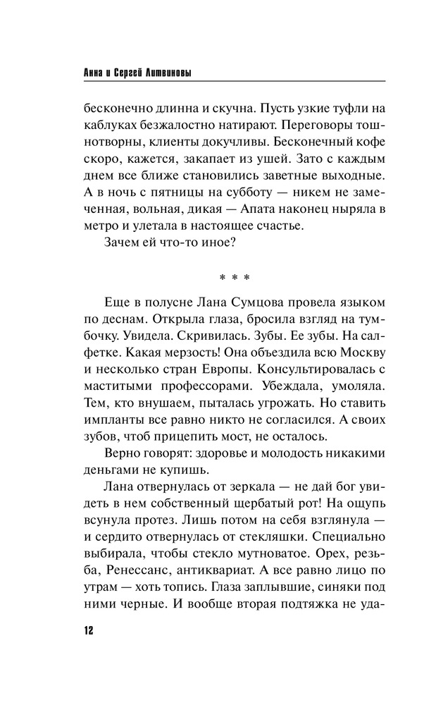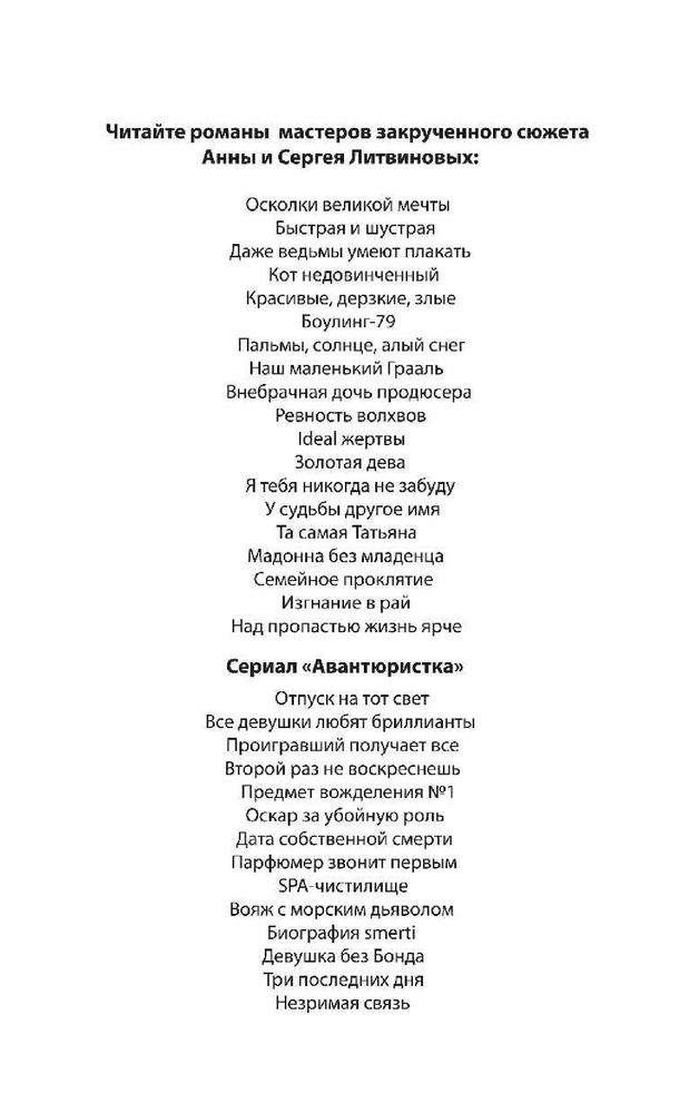 Очень люблю произведения этого творческого дуэта Сергея и Анны Литвиновых. Книга не отпускает от себя до последней страницы: интересный сюжет, замечательные герои, словом - не оторвешься! Всем любителям детективного жанра рекомендую!
