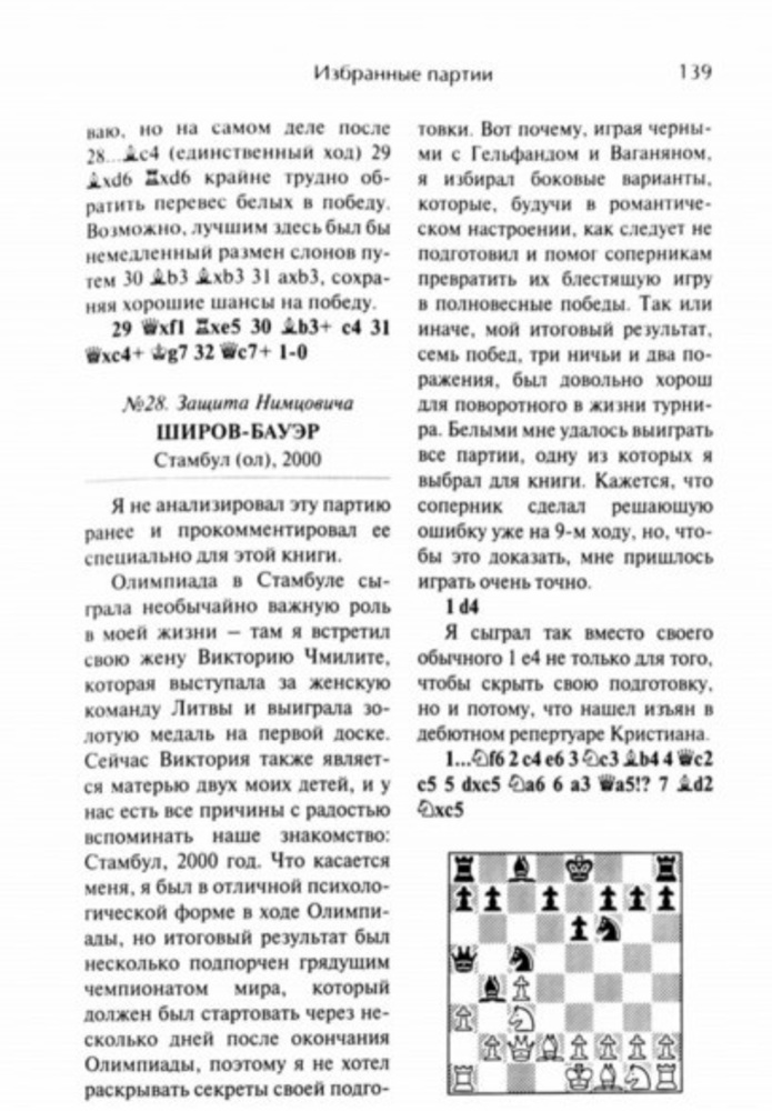 Серия: Великие шахматисты мира Перед вами — продолжение легендарной книги, которую с нетерпением ждали русскоязычные любители шахмат во всем мире.Алексей Широв, неоднократный претендент на звание чемпиона мира и один из самых ярких и самобытных гроссмейстеров современности, подробно и увлекательно комментирует свои лучшие партии, насыщенные тактическими фейерверками и экстраординарными ходами.«Этот мальчик уже сейчас считает лучше меня», — сказал про своего молодого ученика Михаил Таль.«Благодаря своей комбинационной ярости, Широв может считаться одним из прямых наследников Таля...», пишет известный гроссмейстер Дж.Спилмэн.По сравнению с английским изданием книга дополнена партиями последних лет.Для широкого круга любителей шахмат. |