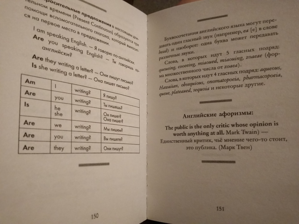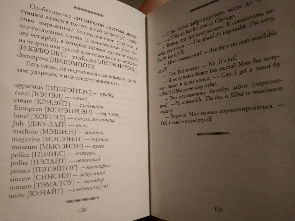 Толстенькая книжица за символическую стоимость — пять звёзд за такой объем. По содержанию много сказать пока не могу, только начала изучать. Но сразу хочу предупредить: самоучитель рассчитан на тех, кто владеет базовыми знаниями. Объясняется не с азов (буквы, сочетания букв, звуки), англоязычных транскрипций нет, а русские лишь формально передают звучание иностранных слов.
