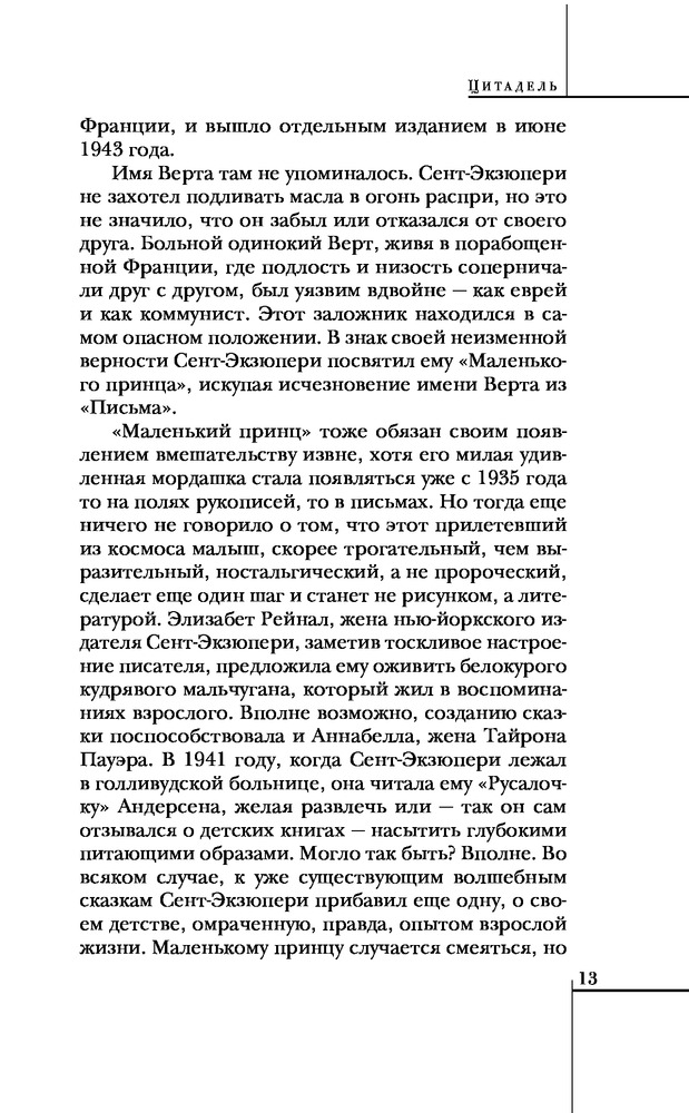 Мне очень понравился Маленький принц! После, узнав об этом произведении, и, прочитав отзывы, решила прочесть. Книга, за свою цену, очень качественная, по-моему. Я заказала несколько книг, поэтому, Цитадель прочту позже.