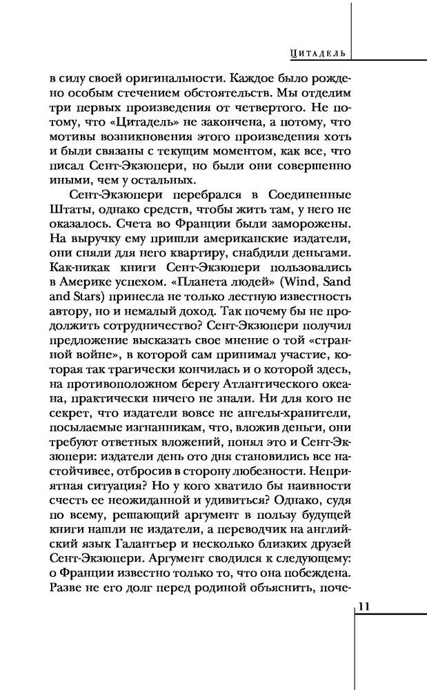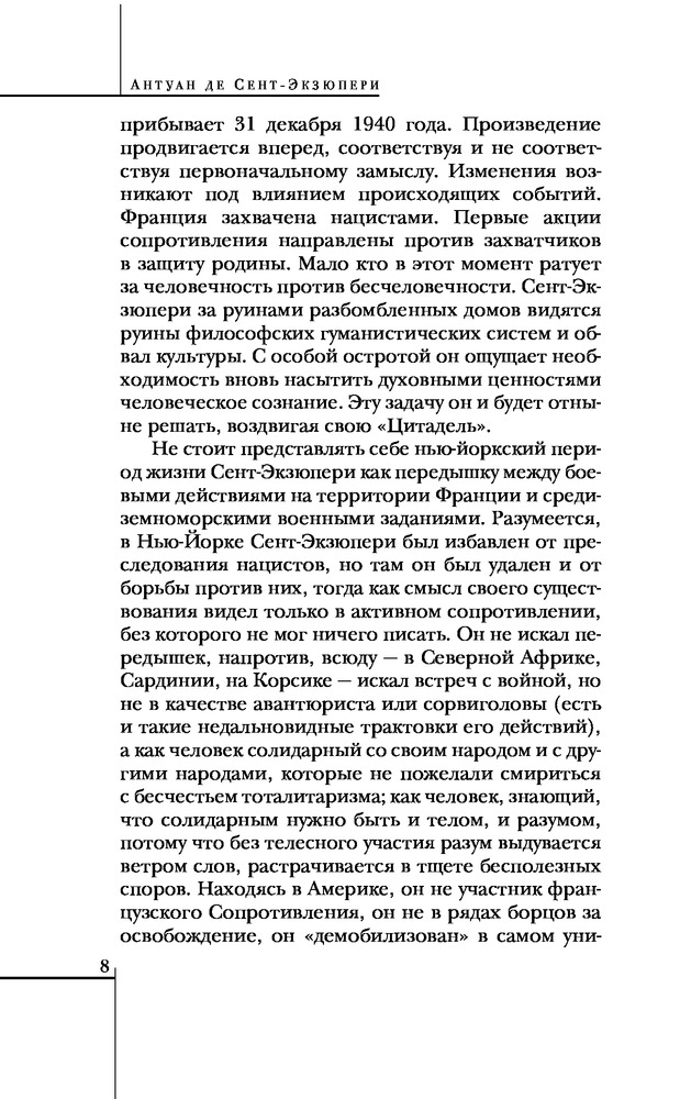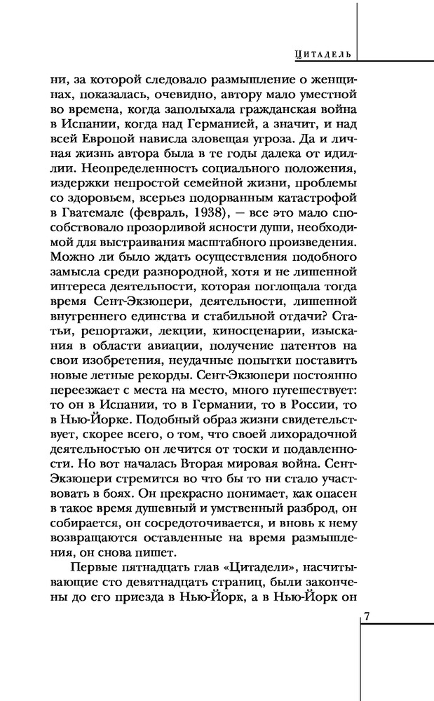 Если до сих пор, имя Антуана де Сент-Экзюпери, олицетворяется вам только с книгой "Маленький принц", бегом читать эту книгу! Это больше, чем книга! Это кладезь человеческой мудрости! Обязательна к прочтению! "Цитадель" - книга, которая должна быть в домашней библиотеке.