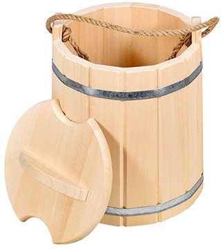 Для удобства использования ведро оснащено деревянной крышкой с ручкой.