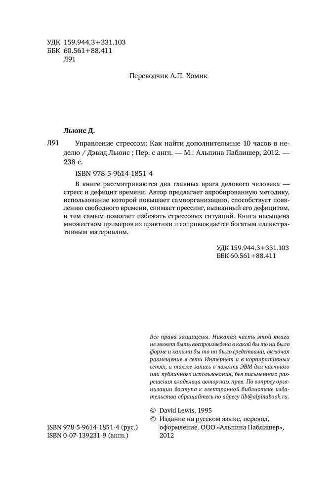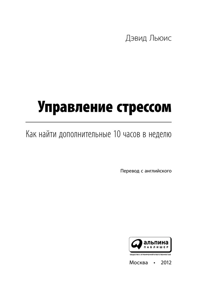 Управление стрессом: Как найти дополнительные 10 часов в неделюВ данный момент этот товар отсутствует в продаже. Возможно, у нас найдется аналогичный или похожий товар здесь. «Секрет организации времени заключается не в более напряженной, а в более эффективной работе». |
