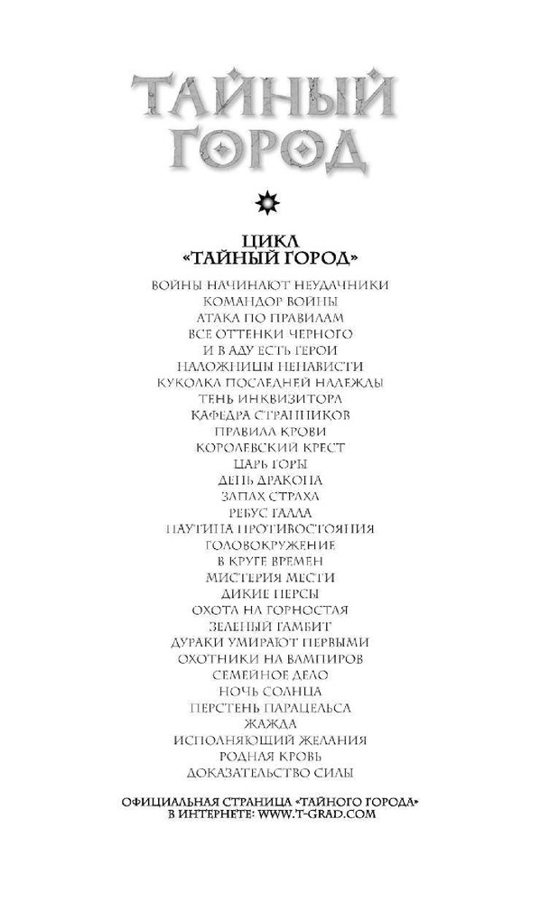 Серия: Тайный город. Мистическая городская фэнтези Власть, любовь, ненависть. Что еще нужно, чтобы начать войну?На одной чаше весов — королевская корона, на другой — жизнь близких, и выбор — как удар меча: стремительный и резкий. Времени нет... Но исход не изменить ни силой, ни мольбой, потому что невозможно изменить то, что уже случилось.Кровавая свадьба королевы Всеславы стала прологом череды потрясений, которые затронули не только Зеленый Дом, но и весь Тайный Город. И вновь Великим Домам не обойтись без помощи сплоченной команды наемников-челов — Артема, Кортеса, Инги и Яны. |