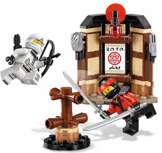 Каждый обладатель такого конструктора LEGO сможет вообразить себя в роли настоящего ниндзи, который будет обучать боевому искусству своего подопечного. После того, как представленный конструктор будет собран, можно смело начинать увлекательную игру. Изучить искусство Кружитцу в Додзе вместе с Каем и Зейном будет невероятно круто и интересно! Такие виды оружия, как жезл или катана, помогут в тренировках настоящего ниндзи. Оттачивать же свое мастерство и готовиться к следующей битве ниндзя сможет на боевом манекене Гармадона.