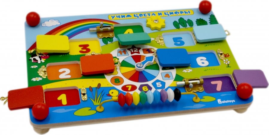 Alatoys Бизиборд «Учим цифры и цвета»В данный момент этот товар отсутствует в продаже. Возможно, у нас найдется аналогичный или похожий товар здесь. Эта удивительная обучающая доска изготовлена из дерева и имеет оригинальное оформление, привлекающее своим необычным исполнением и насыщенными яркими цветами. С такой игрушкой запоминание цветов и цифр превратится в захватывающий процесс. На поверхности доски можно увидеть небольшие счеты, игрушечный циферблат с часами и разноцветные дверки на затворках, которые малыш с любопытством захочет открыть и узнать, что же они скрывают. |