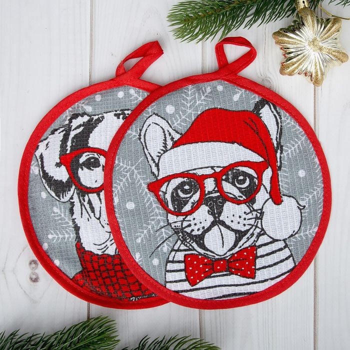 | Доляна Набор прихваток «Стильные собаки» (17х17), 2 шт