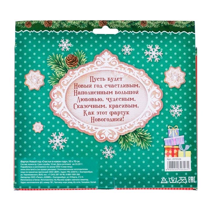 Фартук «Счастья в Новом году»В данный момент этот товар отсутствует в продаже. Возможно, у нас найдется аналогичный или похожий товар здесь. Пусть даже подготовка праздничного стола будет пронизана незримыми нитями Нового года! |