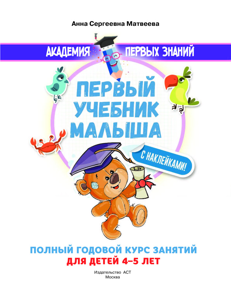 Первый учебник малыша с наклейками. Полный годовой курс занятий для детей 4–5 лет