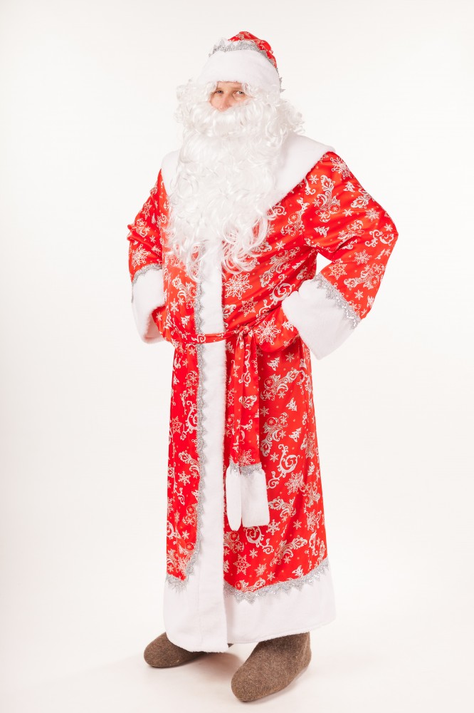 Карнавальный костюм Дед Мороз "Морозко". Шуба, шапка, борода, варежки, мешок, пояс.