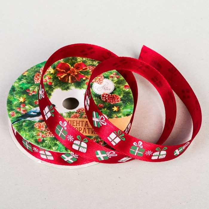 | Арт Узор Лента декоративная атласная «Подарочки» (1,5 см х 5 м)