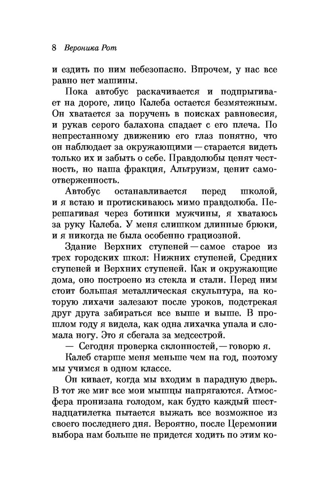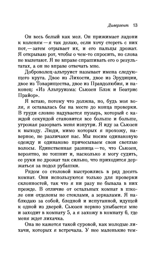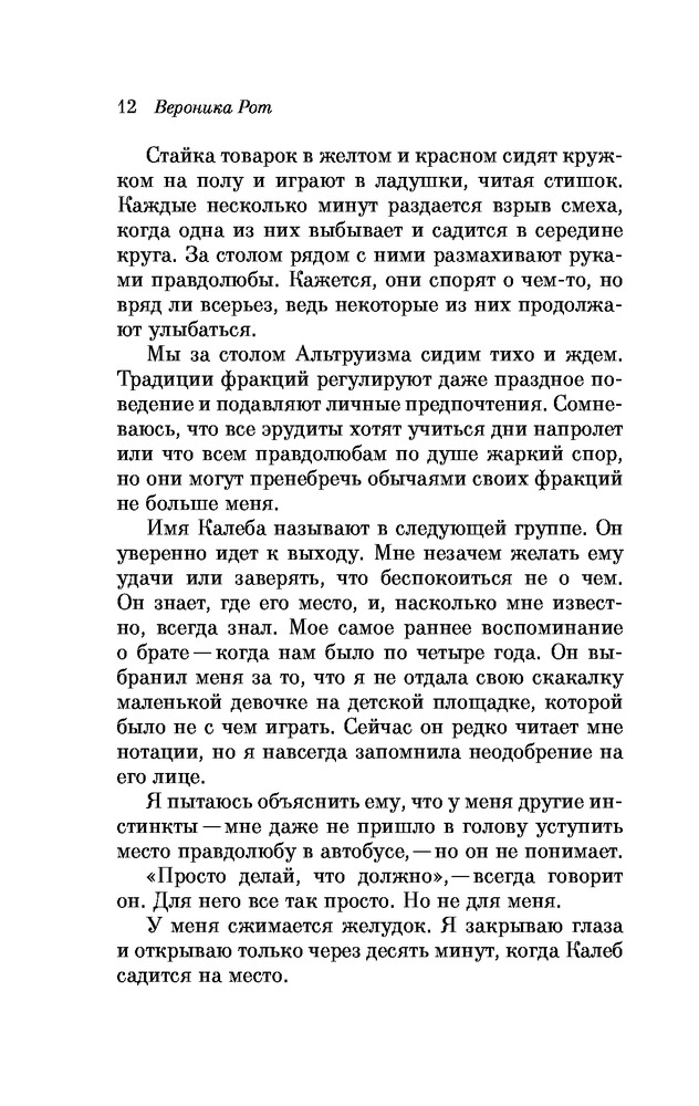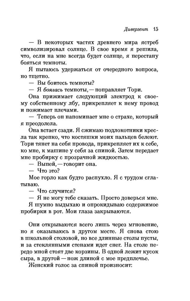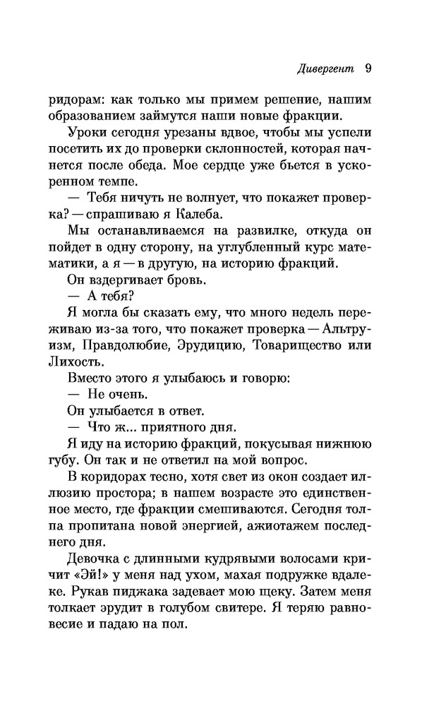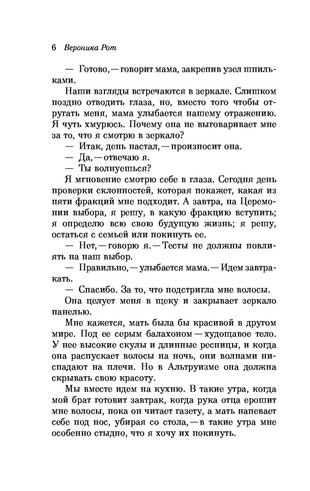 ДивергентВ данный момент этот товар отсутствует в продаже. Возможно, у нас найдется аналогичный или похожий товар здесь. Серия: Pocket Book (обложка) В мире, где живет Беатрис Прайор, люди делятся на пять фракций, каждая из которых посвящена определенному качеству человеческой личности. Эти фракции — Правдолюбие, Альтруизм. Лихость, Товарищество и Эрудиция. Каждый год в определенный день подростки, достигшие 16 лет, имеют право выбрать свой путь. От того, что решит Беатрис, зависит, останется ли она со своей семьей или станет тем, кем ей хочется быть на самом деле. И девушка делает выбор, который удивляет всех, в том числе и ее саму. Ее жизнь меняется окончательно и бесповоротно. У нее появляются новые друзья, новые обязанности и новые чувства — любовь к немного нелюдимому и загадочному наставнику. Однако у Трис есть и собственная тайна, смертельно опасная для нее в том случае, если кто-то проведает о ней. И эта тайна вот-вот может быть раскрыта... |