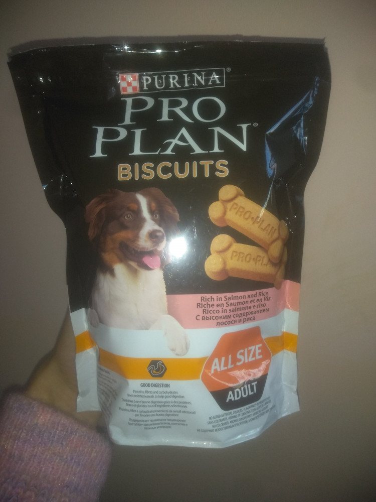 Очень хорошее лакомство. Упаковка большая, печенья много. Ну и собачке очень нравится!☺