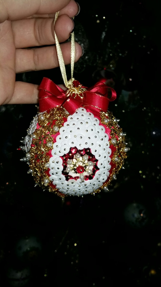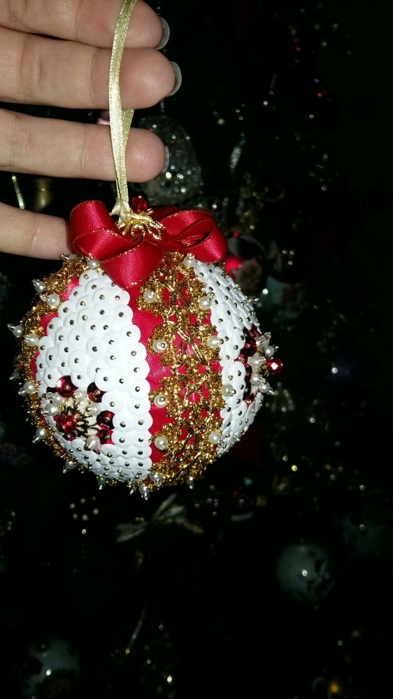К прошлому Новому году я покупала два подобных новогодних шара с пайетками № 8 своей пятилетней внучке и племяннику. Внучка делала сама, племянник младше и ему помогали, но все были в восторге. Проблема только что шар получается тяжеловатым и его плохо держит подвеска