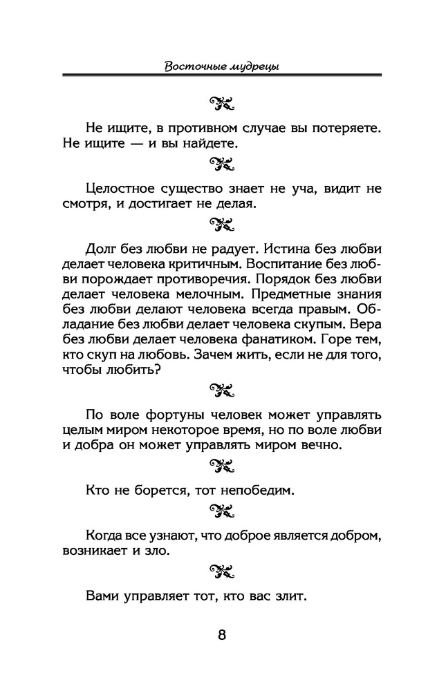 Все лучшие афоризмы и цитаты Восточных мудрецовВ данный момент этот товар отсутствует в продаже. Возможно, у нас найдется аналогичный или похожий товар здесь. Серия: Золотая коллекция афоризмов и цитат В этой книге собраны самые лучшие афоризмы, притчи и цитаты восточных мудрецов! Наслаждайтесь восточным остроумием, логикой, образованностью. Станьте на время послушным учеником, внимающим многомудрым Учителям. И, может быть, прислушавшись к их словам, вы сами найдите ответы на все волнующие вас вопросы. И превзойдете восточных наставников, став настоящим Мудрецом. |